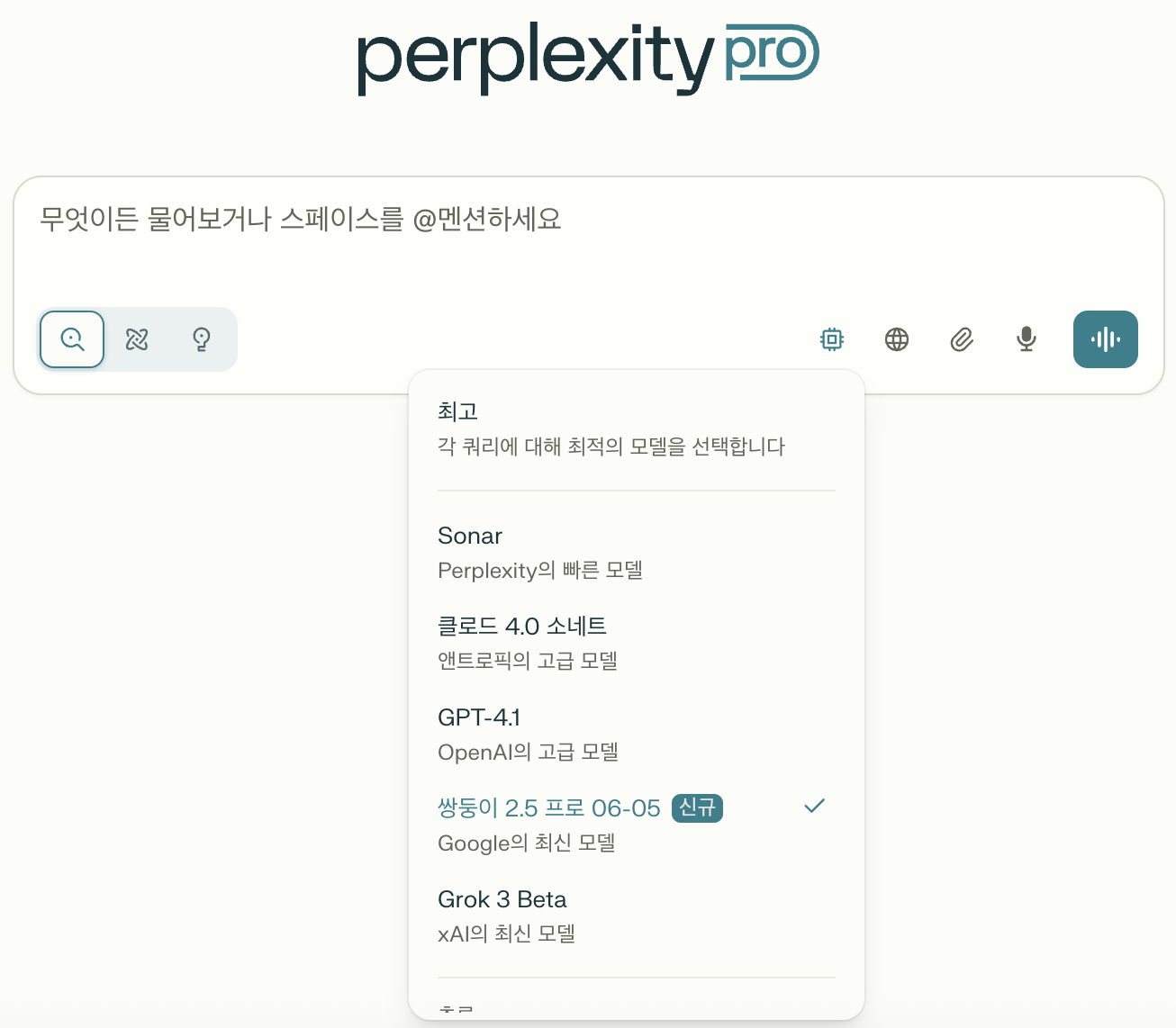 - 설명: Perplexity AI에서 제공하는 AI 검색·요약 서비스로, 자체 LLM에 실시간 웹 탐색(RAG, Retrieval-Augmented Generation)을 결합했습니다. 최신 뉴스·논문·웹페이지를 즉시 조회해 출처와 함께 간결히 답변합니다. 즉, 인터넷을 실시간으로 검색해 최신 정보와 근거(URL)를 함께 알려주는 AI라, 뉴스나 자료 확인이 빠르고 믿을 수 있습니다.