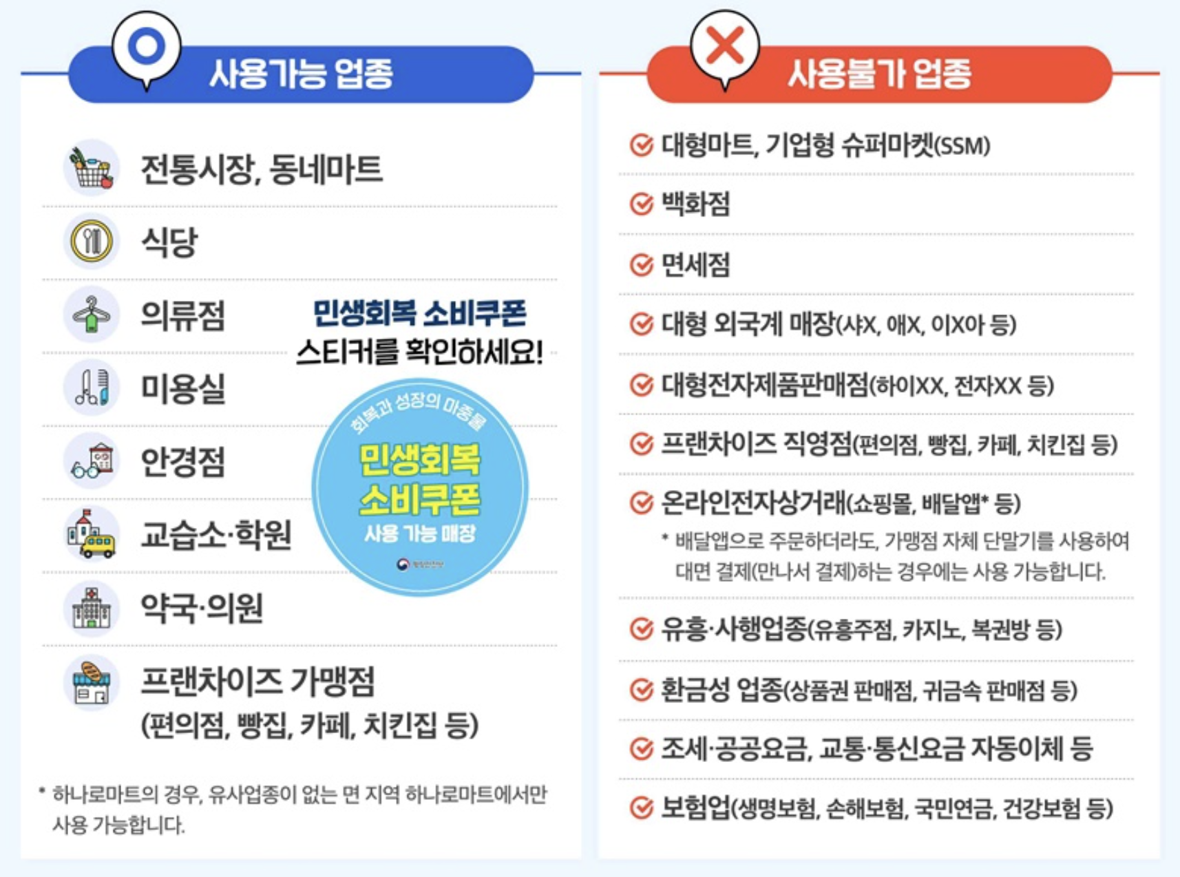 사용 가능 업종은 아래와 같습니다.