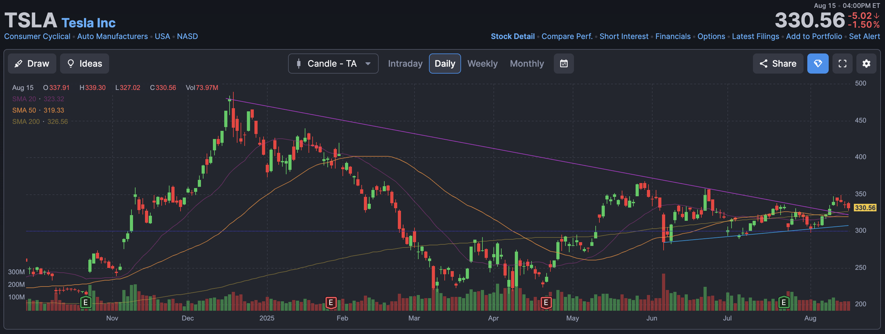 저는 이러한 흐름 속에서 주가가 조정을 받을 때마다 분할 매수로 꾸준히 모아가는 전략이 가장 안정적이라고 생각합니다. 테슬라는 압도적인 시가총액과 독보적인 시장 지위를 가진 기업이기에, 현재 구간은 장기 투자자에게 오히려 기회라고 봅니다.