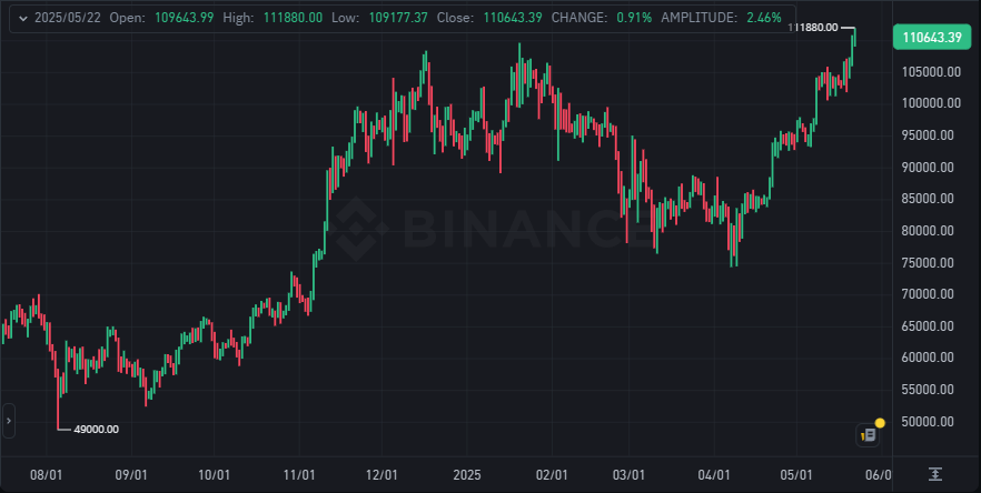 이번 글에서는 제가 가상자산 중에서도 가장 많이 보유하고 있는 자산인 비트코인(BTC)에 대해 이야기해 보려 합니다. 특히 오늘(2025년 5월 22일), 비트코인이 다시 한번 사상 최고가(ATH, All-Time High)를 갱신하며 시장의 주목을 받고 있어, 이 의미와 배경을 공유해보고자 합니다.